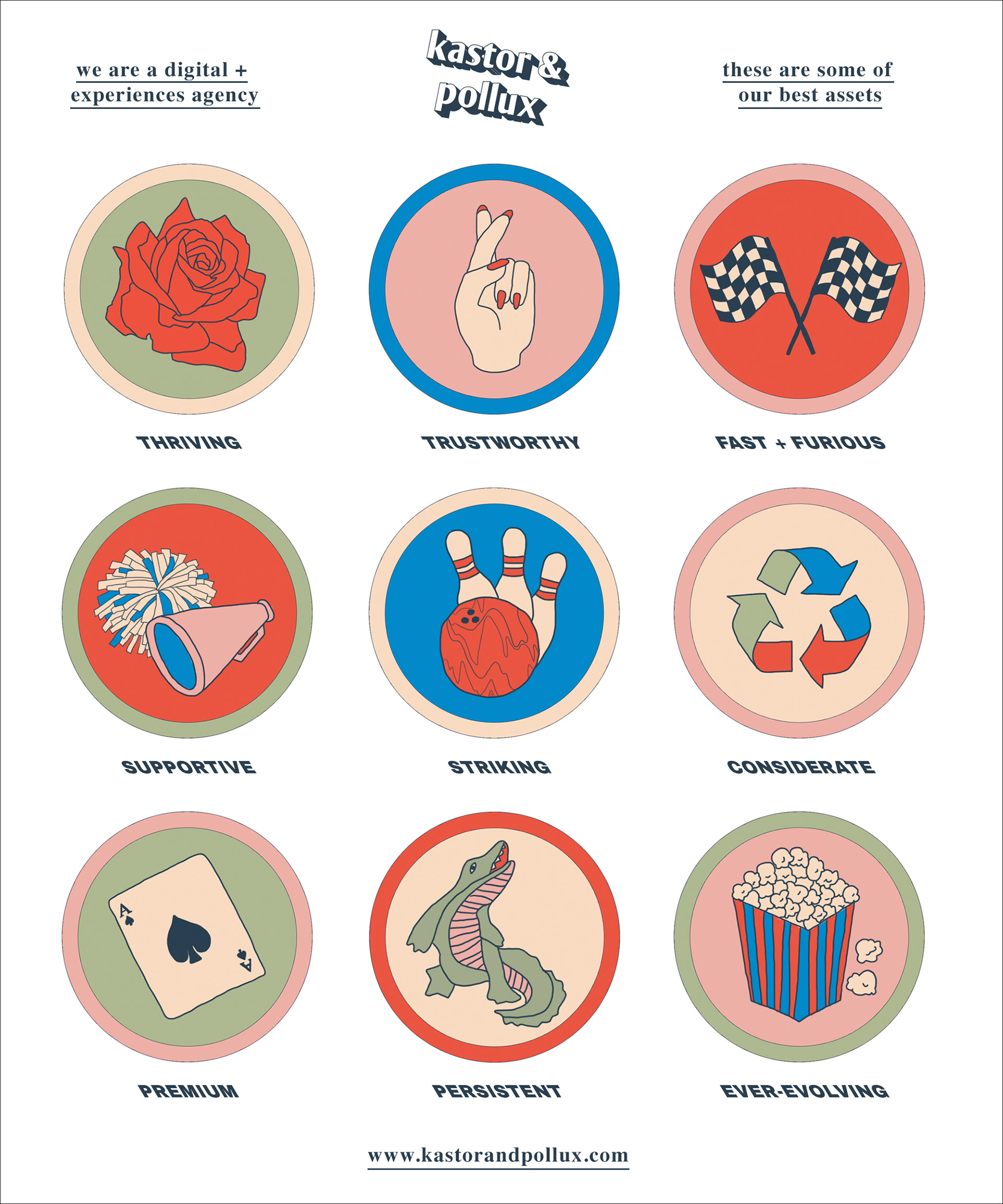 To reach out to clients and prospective clients, I created this mailer inspired by the pillars that make Kastor & Pollux special. Scout's honour! Hand assembled. Edition of 75. Design: Dani Roche Documentation: Dani Reynolds www.kastorandpollux.com
